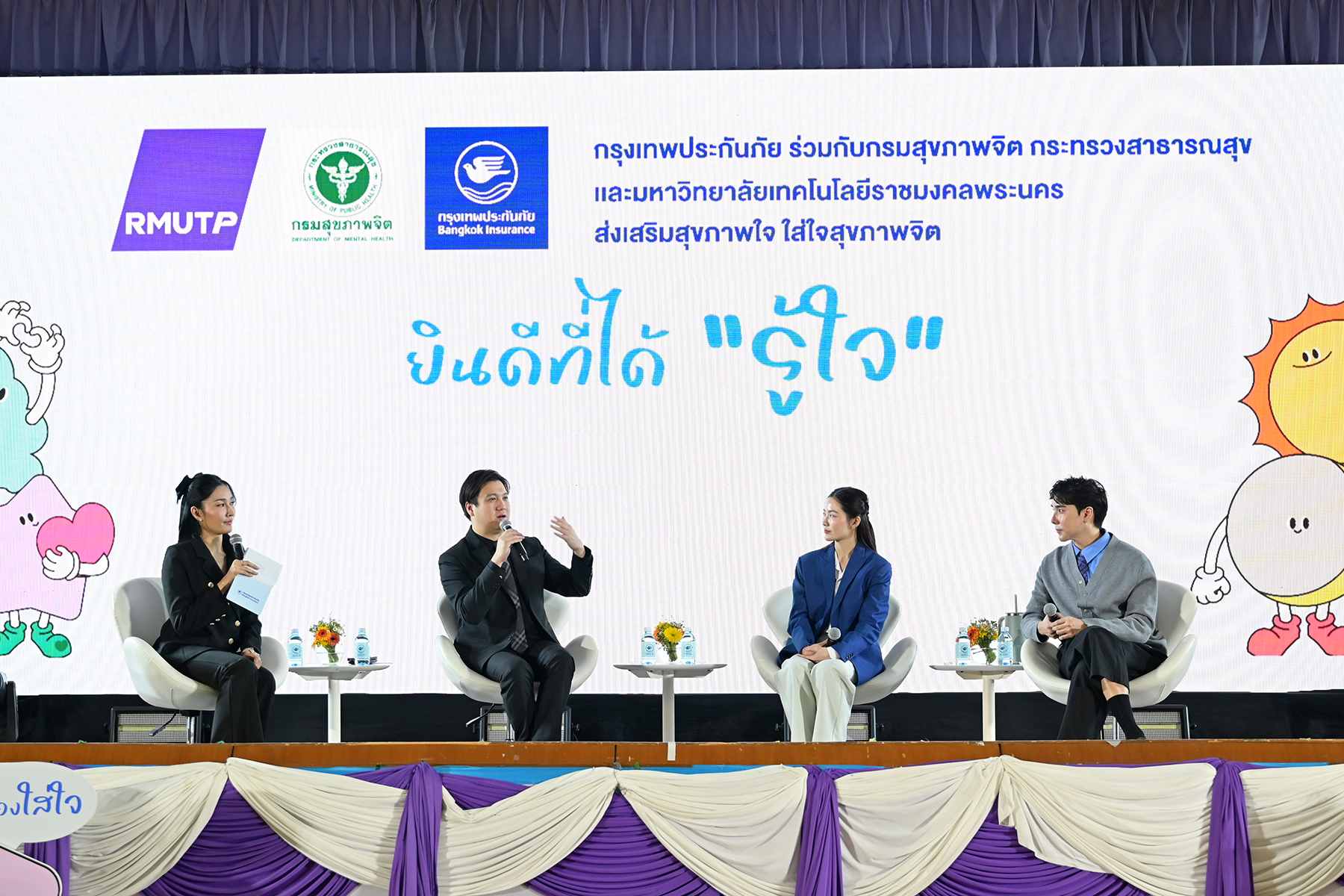 ด้วยความมุ่งมั่นที่จะส่งเสริมการดูแลสุขภาพจิตของคนไทย กรุงเทพประกันภัยร่วมกับกรมสุขภาพจิต กระทรวงสาธารณสุข เดินหน้าจัดกิจกรรม “กรุงเทพประกันภัย ส่งเสริมสุขภาพใจ ใส่ใจสุขภาพจิต”ต่อเนื่องเป็นปีที่ 2 ภายใต้แนวคิด “ยินดีที่ได้รู้ใจ” เพื่อรณรงค์ให้ความรู้ สร้างความตระหนัก และสร้างความเข้าใจเกี่ยวกับการดูแลสุขภาวะทางใจให้แก่เยาวชน คนรุ่นใหม่ และประชาชนทั่วไป ผ่านกิจกรรมการสื่อสารที่เข้าถึงง่าย หลากหลาย และเหมาะสม ด้วยการจัดนิทรรศการและการพูดคุยเสวนาในสถาบันการศึกษาต่างๆ ล่าสุดบริษัทฯ ได้รับความร่วมมืออย่างดีจากมหาวิทยาลัยเทคโนโลยีราชมงคลพระนคร ศูนย์พณิชยการพระนคร โดยในครั้งนี้ได้รับเกียรติจาก ผศ.ดร.กษิดิ์เดช สุทธิวานิช รองอธิการบดี มหาวิทยาลัยเทคโนโลยีราชมงคลพระนคร และนางสาวปวีณา จูชวน ผู้อำนวยการใหญ่ บริษัท กรุงเทพประกันภัย จำกัด (มหาชน) ร่วมเป็นประธานเปิดงาน ณ ห้องประชุมมงคลอาภา มหาวิทยาลัยเทคโนโลยีราชมงคลพระนคร ศูนย์พณิชยการพระนคร เมื่อเร็วๆ นี้