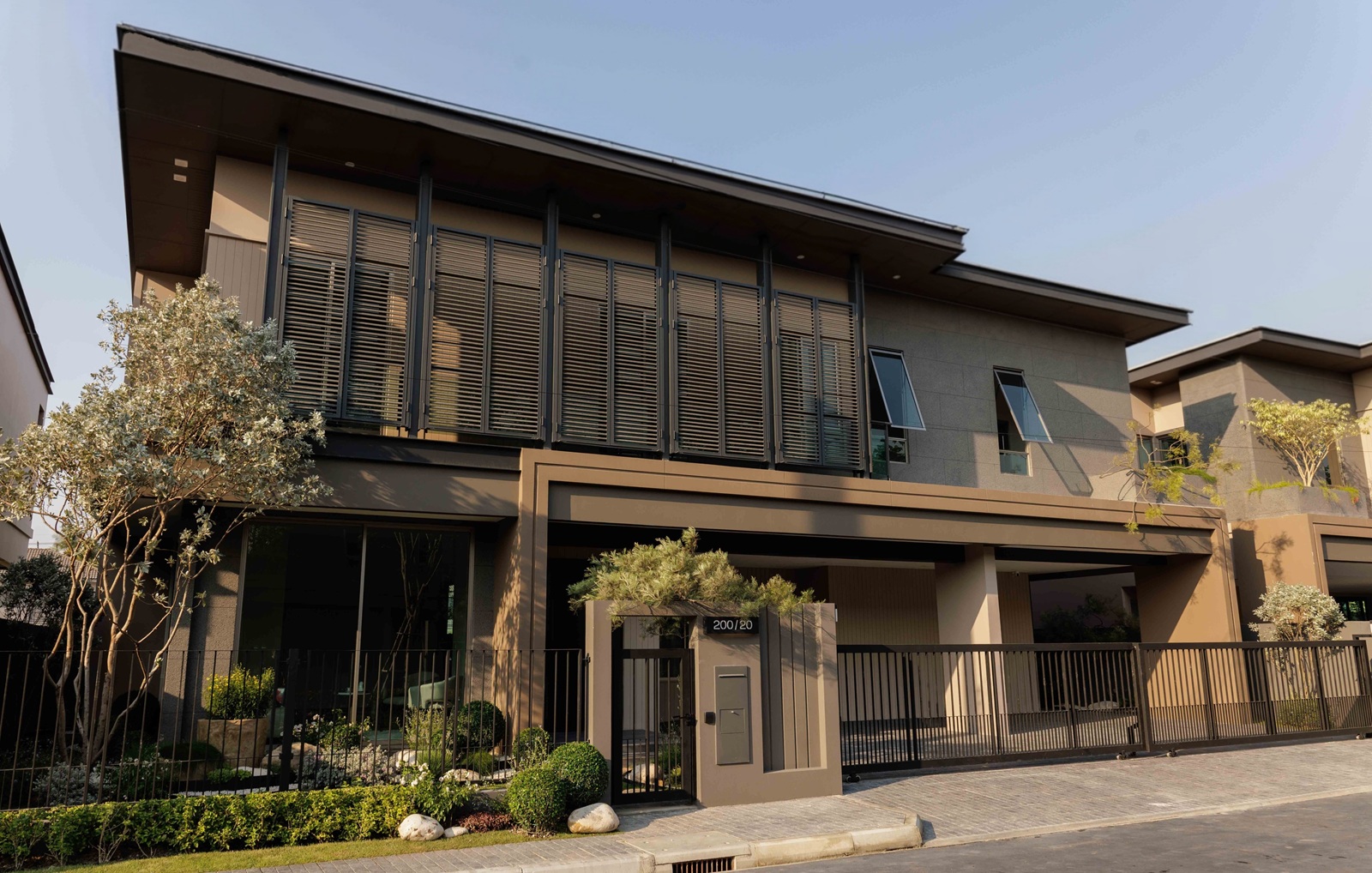 การออกแบบสวนได้นำแนวคิดการจัดสวนในสไตล์ Exotic DUKE Signature มาผสานเข้ากับสถาปัตยกรรมของโครงการอย่างลงตัว โดยมองพื้นที่สวนเสมือน “งานศิลปะที่วาดขึ้นด้วยธรรมชาติ” ใช้พรรณไม้ที่หลากหลาย ก้อนหิน กรวด และองค์ประกอบของน้ำ ถ่ายทอดเส้นสาย สีสัน และเลเยอร์ของพื้นที่ให้มีชีวิต พร้อมใช้โทนสีธรรมชาติอย่าง สีเขียวของหญ้า สีขาวของกรวด และพื้นผิวของหิน มาช่วยแบ่งโซนให้สวนดูสะอาดตา ผสมผสานระหว่างไม้ใบรูปทรงสวยงาม ไม้แปลกตาที่ช่วยสร้างคาแรกเตอร์และกลมกลืนกับสถาปัตยกรรมของบ้าน เติมเต็มบรรยากาศโดยรวมให้ดูเป็นธรรมชาติ เกิดเป็นสวนที่มีทั้งความร่วมสมัย ความดราม่า และเสน่ห์ของความเป็นทรอปิคัลในแบบที่ไม่จำเจ ทำให้เมื่อก้าวผ่านทางเข้าสู่บ้าน พื้นที่ภายในจะค่อย ๆ เปิดมุมมองไปสู่ Courtyard กลางบ้าน ผู้อยู่อาศัยจะได้สัมผัสบรรยากาศธรรมชาติอย่างใกล้ชิด ทั้งเสียงน้ำ เงาของกิ่งไม้ และสีสันของพรรณไม้ที่เปลี่ยนไปตามช่วงเวลา ช่วยสร้างความรู้สึกผ่อนคลายและเติมเต็มคุณภาพชีวิตในทุกวัน สะท้อนแนวคิดการอยู่อาศัยซึ่งผสานธรรมชาติ ความเป็นส่วนตัว และสุขภาวะที่ดี ทำให้ “บ้าน” เป็นพื้นที่แห่งความสงบและแรงบันดาลใจ เพื่อยกระดับประสบการณ์การใช้ชีวิตในแบบ Modern Tropical Courtyard Living อย่างแท้จริง