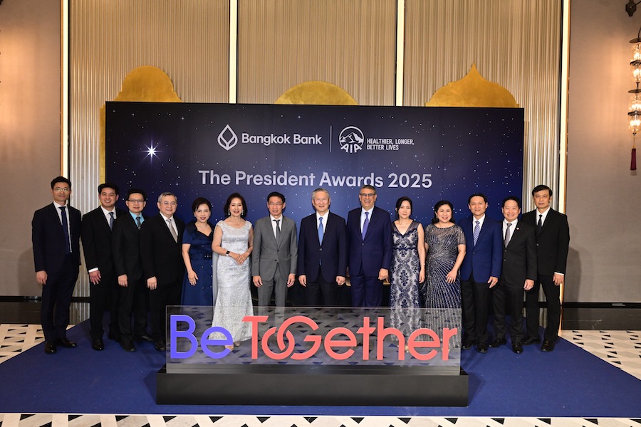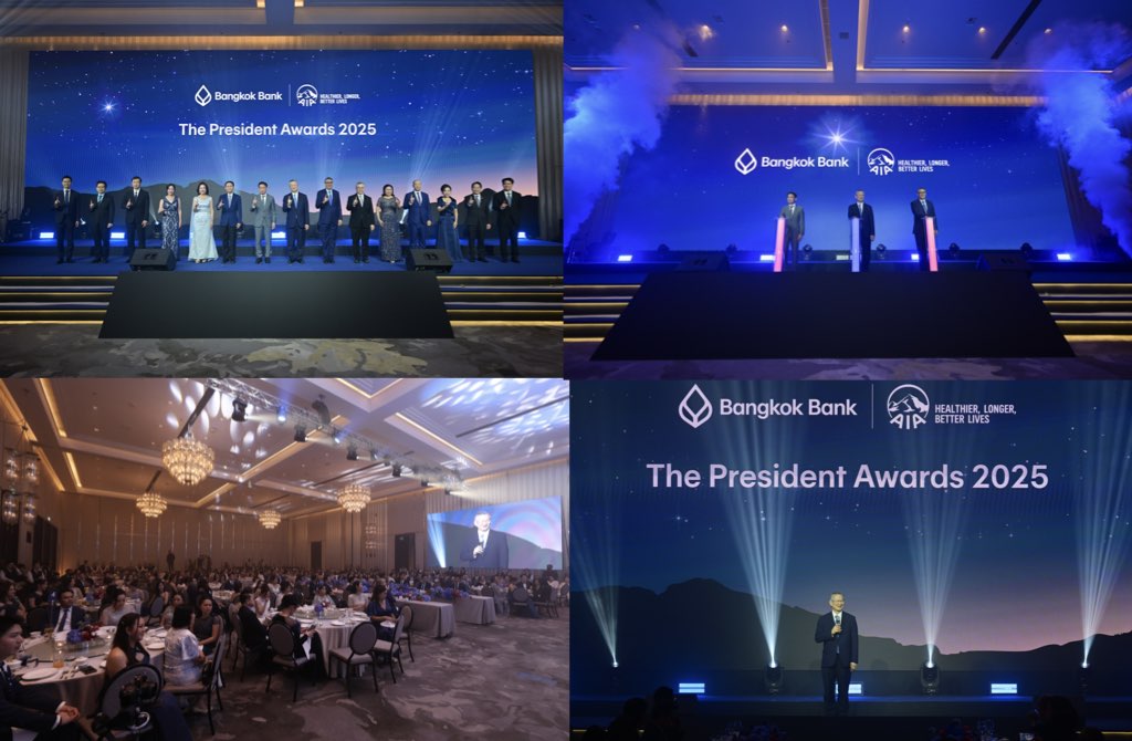 เปล่งประกายความสำเร็จ-ธนาคารกรุงเทพ ร่วมกับเอไอเอ ประเทศไทย มอบรางวัลทรงคุณค่า ‘The President Award 2025’ ครั้งที่ 5 เพื่อฉลองความสำเร็จให้กับทีมงานนักขายของธนาคารที่มีผลงานขายประกันชีวิตดีเด่น ประจำปี 2568 รวมทั้งสิ้น 180 รางวัล เมื่อวันที่ 21 มีนาคม 2569 ณ ห้องแกรนด์บอลรูม 2 โรงแรมเดอะ ริทซ์-คาลตัน กรุงเทพ โดยมีผู้บริหารระดับสูงของทั้ง 2 หน่วยงานเข้าร่วมพิธีและแสดงความยินดีกับผู้ได้รับรางวัล นำโดย นายชาติศิริ โสภณพนิช กรรมการผู้จัดการใหญ่ นายไชยฤทธิ์ อนุชิตวรวงศ์ รองผู้จัดการใหญ่ นายสุวัชชัย ทรงวานิช รองผู้จัดการใหญ่ นางพจณี คงคาลัย ผู้ช่วยผู้จัดการใหญ่ และนางสาวพรพิมล ตรงเที่ยงธรรม ผู้ช่วยผู้จัดการใหญ่ ธนาคารกรุงเทพ จำกัด (มหาชน) นายตัน ฮาค เลห์ ประธานเจ้าหน้าที่บริหารประจำภูมิภาค กลุ่มบริษัทเอไอเอ นายนิคฮิล แอดวานี ประธานเจ้าหน้าที่บริหาร และนางสาวอรรัตน์ ชุติมิต ประธานเจ้าหน้าที่ฝ่ายพันธมิตรธุรกิจแบงก์แอสชัวรันส์เชิงกลยุทธ์ เอไอเอ ประเทศไทย
