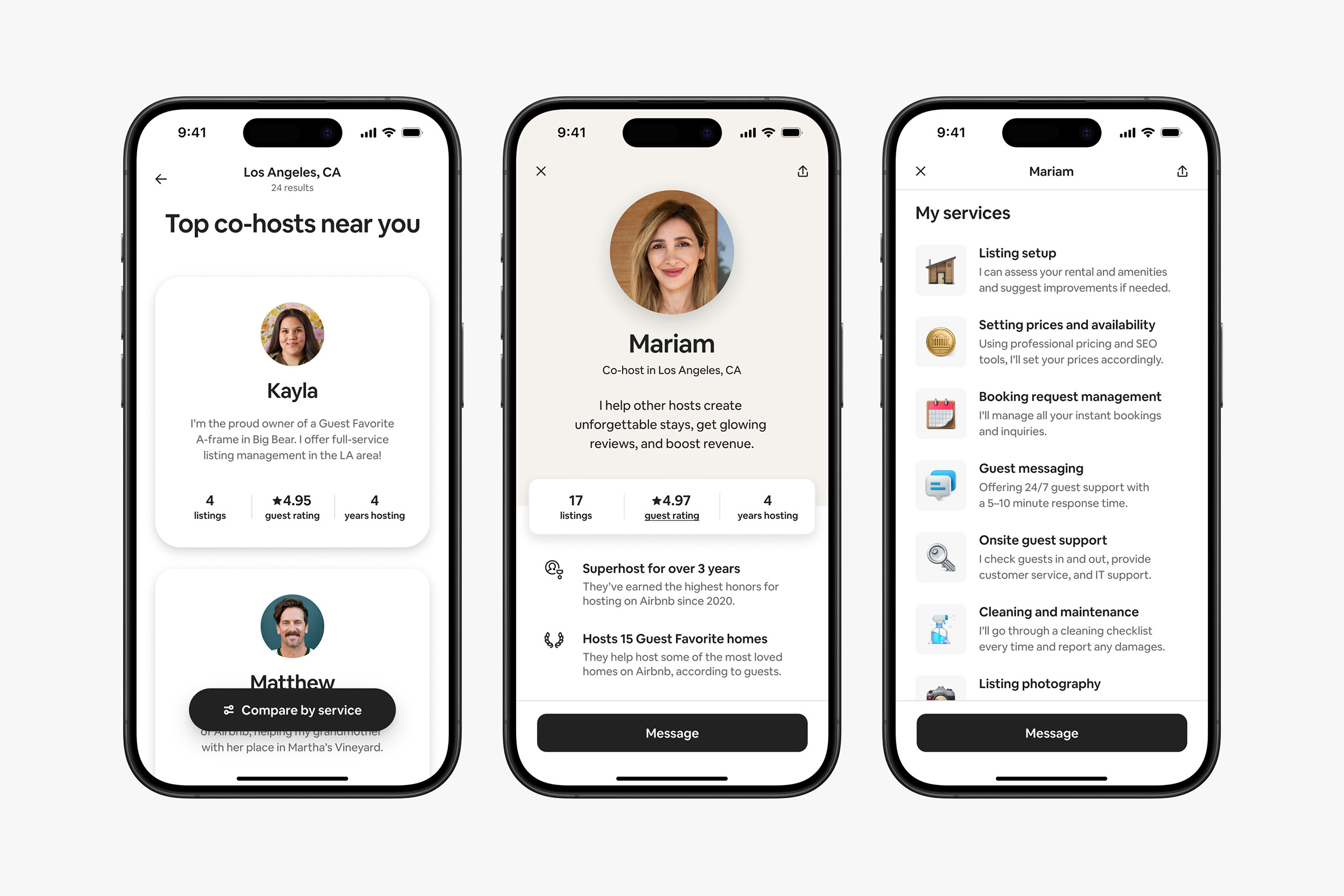 · จ้างเจ้าของที่พักมือหนึ่งใน Airbnb – ผู้ช่วยเจ้าของที่พักคือโฮสต์ที่มีประสบการณ์ในการให้เช่าที่พักที่มาพร้อมกับคะแนนเฉลี่ยสูงถึง 4.87 บน Airbnb เมื่อเทียบกับบริษัทจัดการที่พักเจ้าใหญ่ที่มีคะแนน 4.63 คะแนน โดยผู้ช่วยเจ้าของที่พัก 74% เป็นเจ้าของที่พักดีเด่น และ 86% ช่วยจัดการที่พักโดนใจผู้เข้าพัก