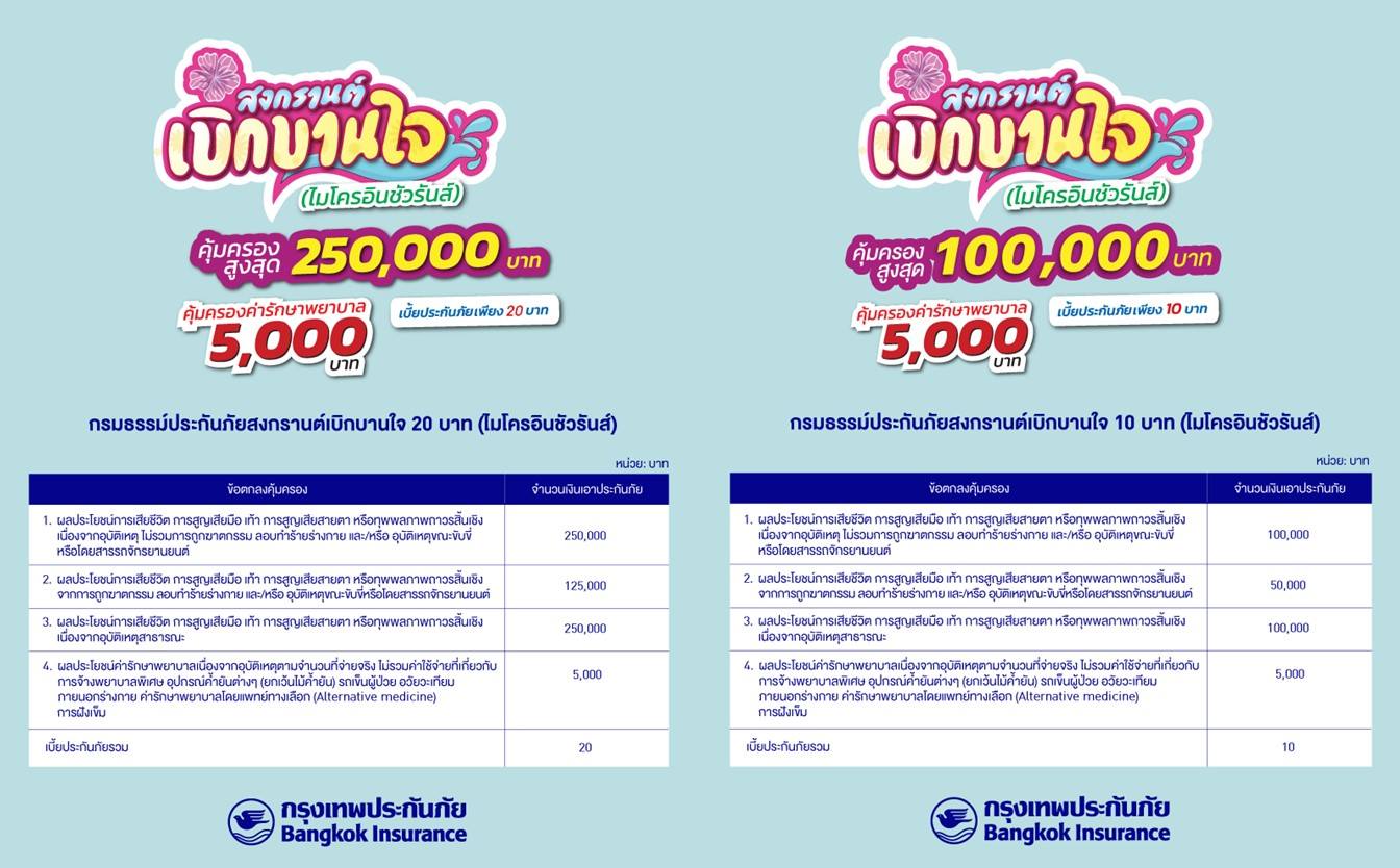 • กรมธรรม์ประกันภัยสงกรานต์เบิกบานใจ 20 บาท (ไมโครอินชัวรันส์)
