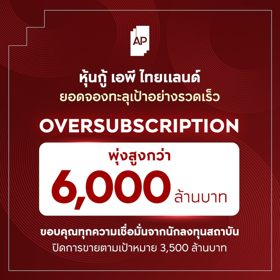 เอพี ไทยแลนด์ โชว์แกร่งรับต้นปี 69 ปิดจองหุ้นกู้ Oversubscription ทะลุ 6,000 ล.