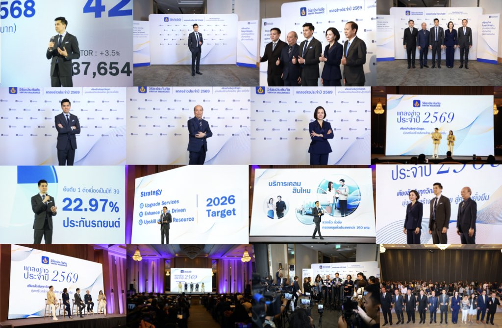 นายอมร ทองธิว กรรมการผู้จัดการ บริษัท วิริยะประกันภัย จำกัด (มหาชน) นำคณะผู้บริหารระดับสูง จัดงานแถลงข่าวประจำปี 2569 ภายใต้แนวคิด “วิริยะประกันภัย เคียงข้างคนไทยในทุกวิกฤต มุ่งเสริมสร้างสังคมไทยสู่ความยั่งยืน” เพื่อแถลงถึงผลการดำเนินงานในปีที่ผ่านมา พร้อมประกาศทิศทางและกลยุทธ์การดำเนินงานปี 2569 ที่มุ่งเน้นการขับเคลื่อนองค์กรหลากหลายมิติ ทั้งการยกระดับประสบการณ์บริการด้วยการประยุกต์ใช้นวัตกรรม การสนับสนุนมาตรฐานงานบริการด้วย Data Driven รวมถึงให้ความสำคัญกับการเสริมศักยภาพบุคลากรอย่างต่อเนื่อง ควบคู่ไปกับการดำเนินธุรกิจตามหลัก ESG (Environmental, Social, Governance) เพื่อเสริมความแข็งแกร่งขององค์กรให้พร้อมรับมือกับทุกวิกฤตในอนาคต และยืนหยัดเป็นหลักประกันความเสี่ยง เคียงข้างสังคมไทยทุกสถานการณ์ ณ ห้องแกรนด์บอลรูม โรงแรม Jubilee Prestige Hotel Ratchadapisek กรุงเทพฯ